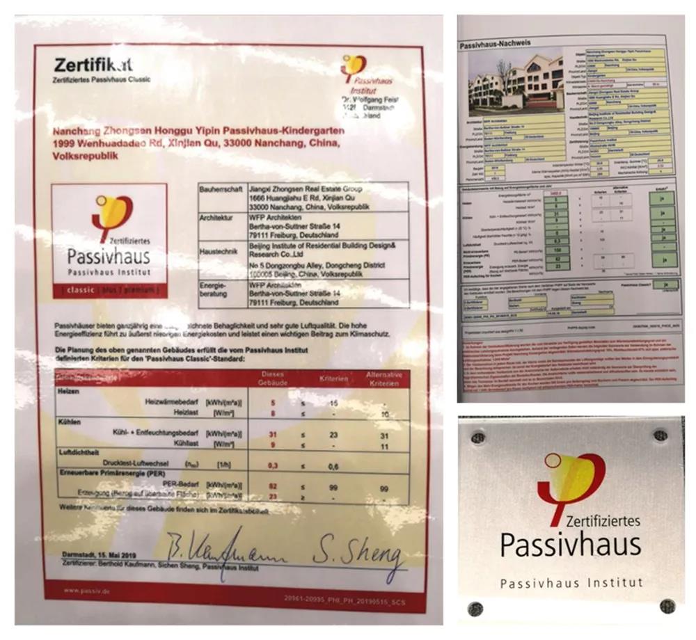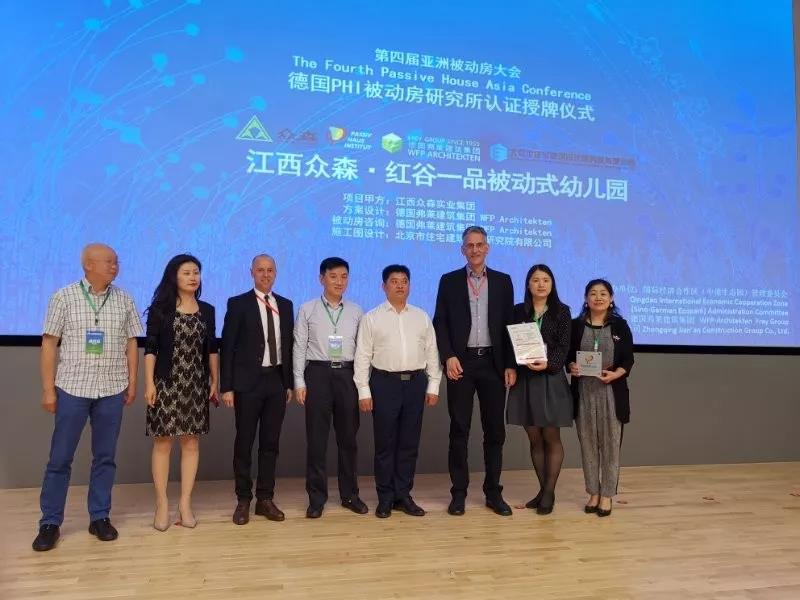 大會同時為2018~2019年通過德國PHI被動房研究所認證的超低能耗項目進行了授牌。北京住宅院與德國弗萊建筑集團合作完成的江西眾森·紅谷一品被動式幼兒園順利通過驗收,成為了江西省首例獲得德國被動房認證的超低能耗建筑!
